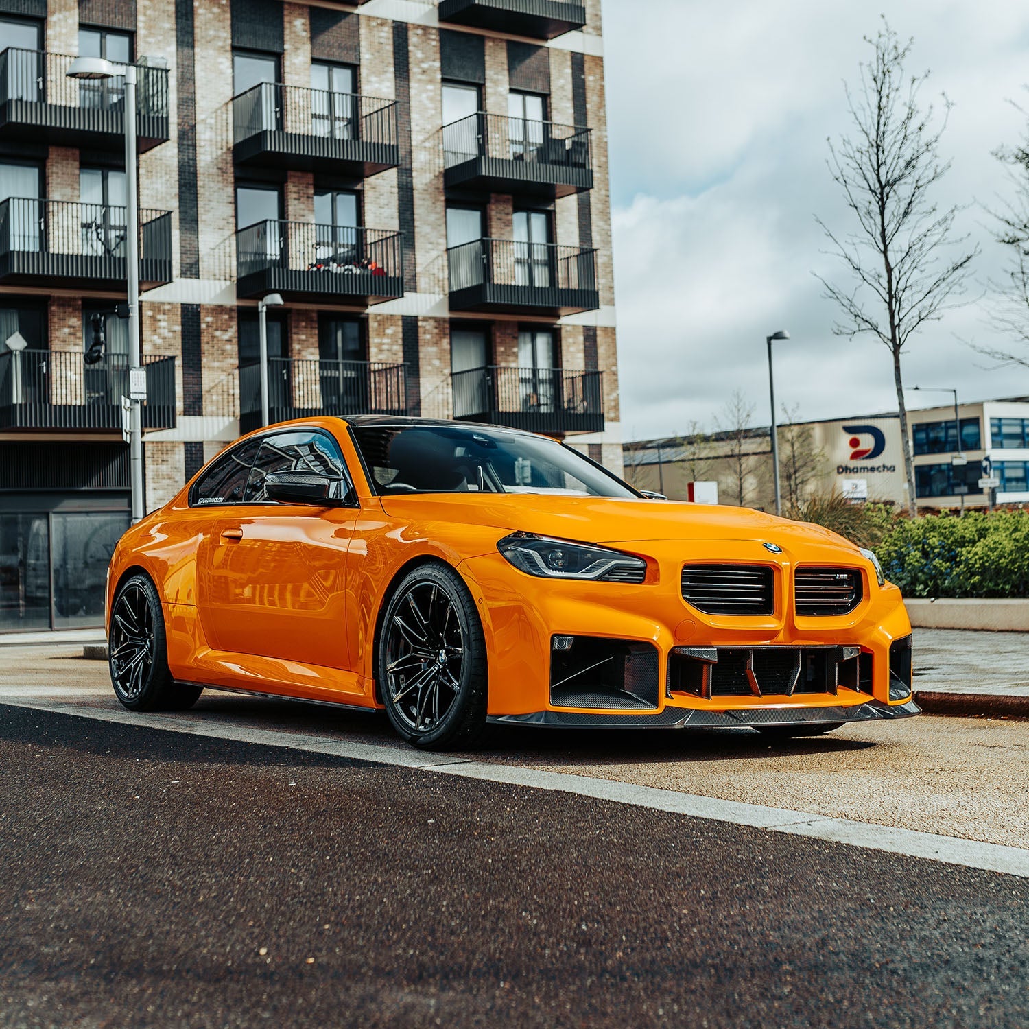 H&R sports lowering springs for the BMW G87 M2 Coupe lower the vehicle's ride height by approximately 30mm (front) and 20mm (rear). This drop in the G87 M2's ride height gives the car a more sporty appearance and a lower centre of gravity for improved handling and balance through corners.
