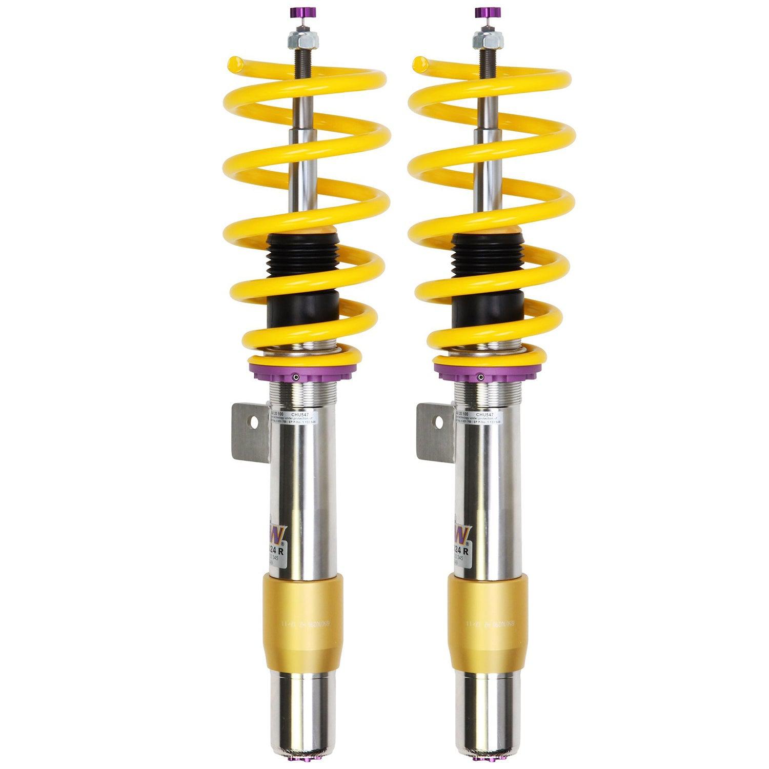 KW's exclusive patented system has dual-level valves that allow for adjustment of the rebound dampening for road comfort, as well as the compression dampening that controls the driving dynamics. This allows the KW's damper to handle a wide range of driving situations effectively with both stability and composure. The stainless steel body gives the best possible corrosion resistance; a huge advantage in climates where road salt is used. With proper maintenance, they avoid the seizing problems that affect inferior coilover kits. KW manufacture their own springs, which means you're buying a complete package. Springs are also powder-coated for corrosion resistance.