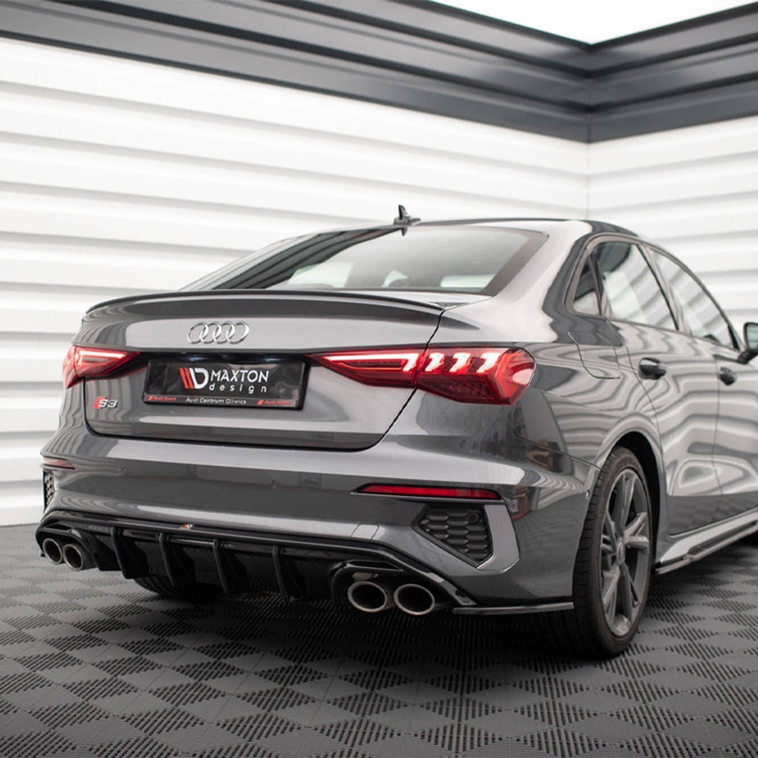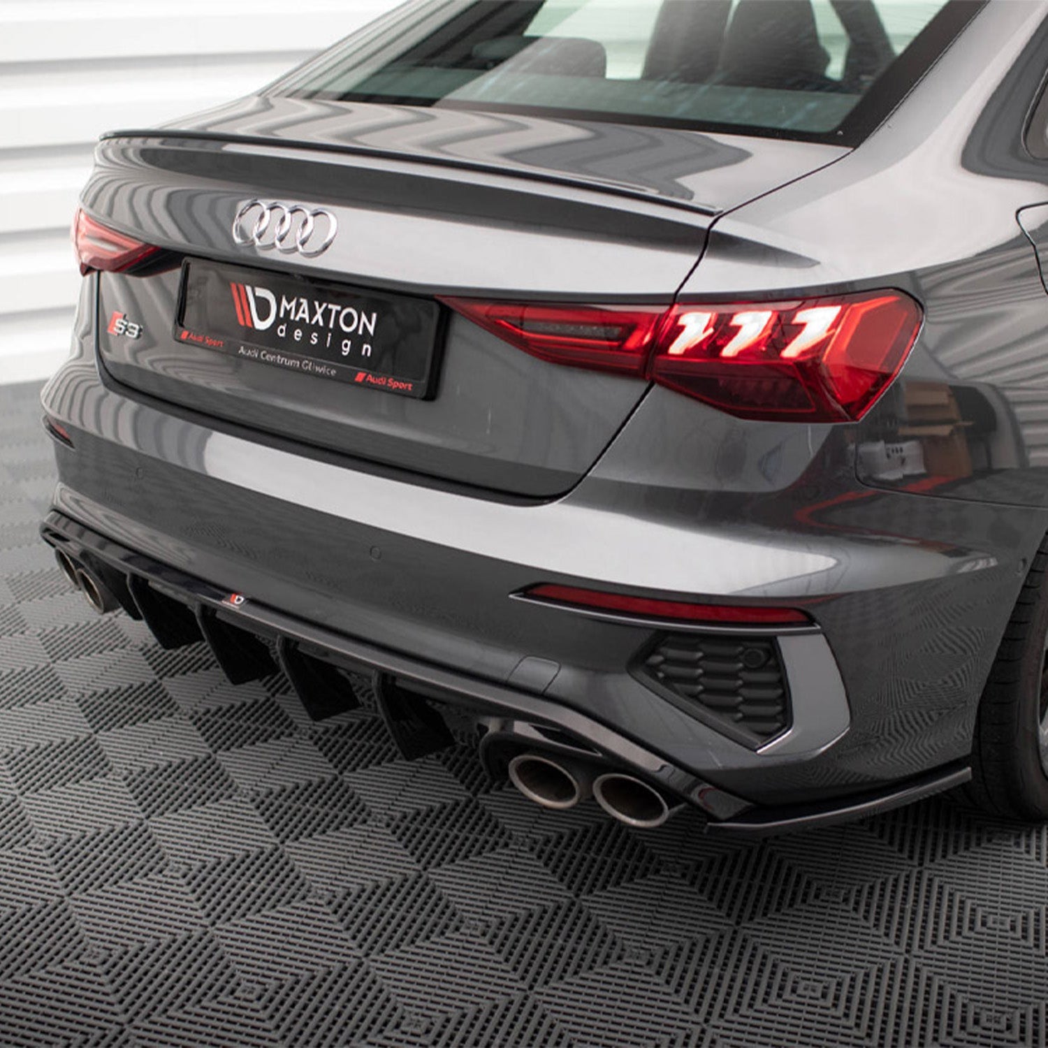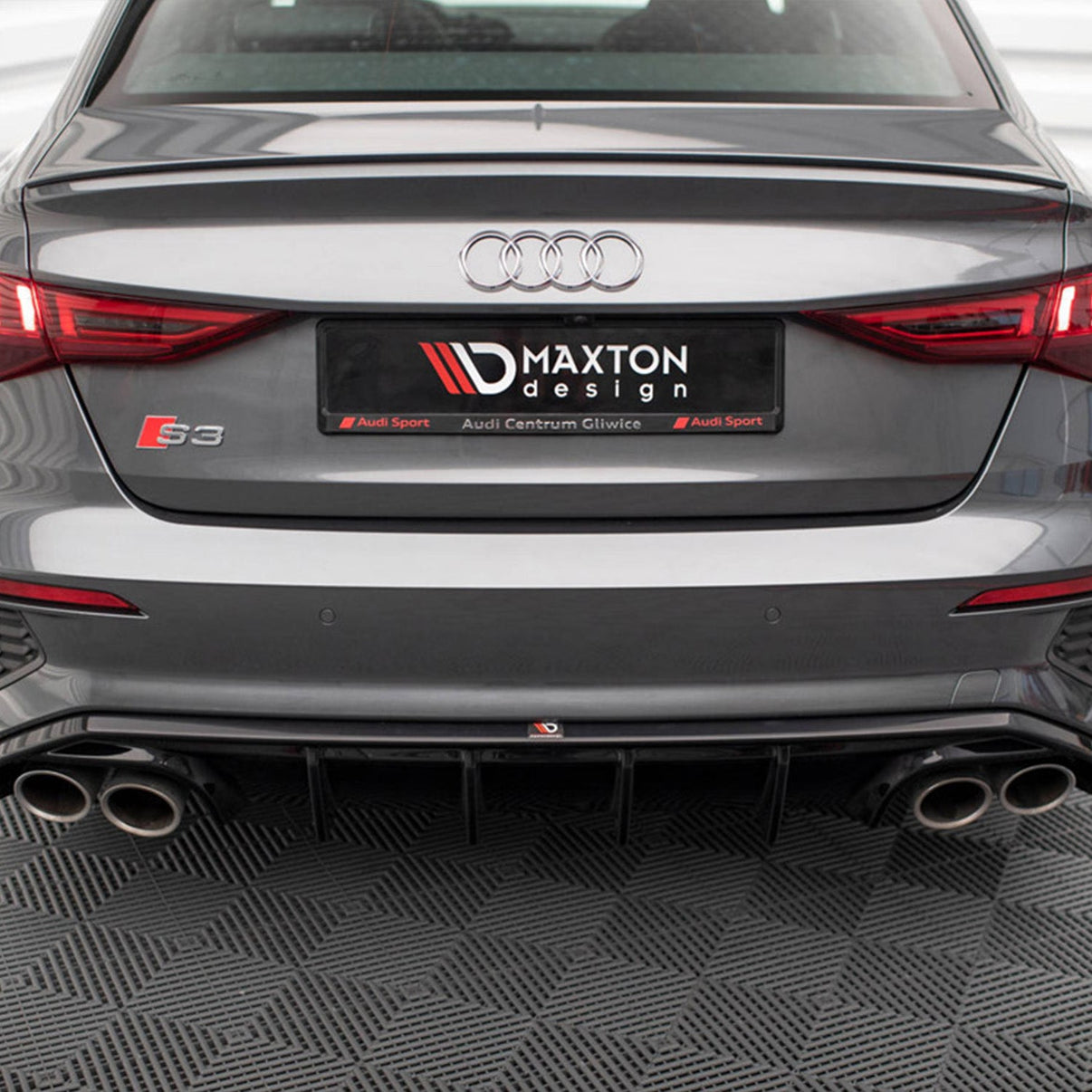 Maxton Design's gloss black rear diffuser for the Audi 8Y S3 sedan gives the rear of the car a more aggressive and muscular look. This piece was designed using 3D scanning technology to ensure a perfect fit. The premium gloss black finish is very sleek and the lacquer is highly resistant to corrosion for long-term style.