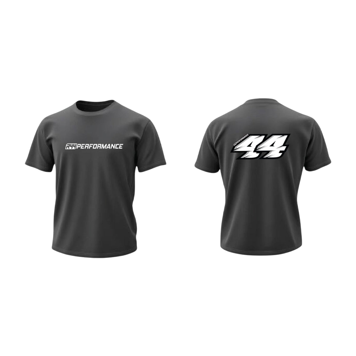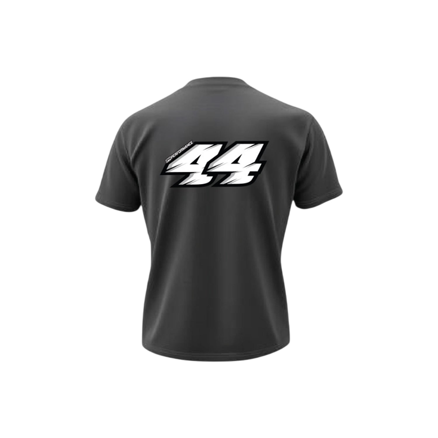 The R44 Performance Classic Racing Tee in Grey is a high-quality, comfortable t-shirt featuring an R44 Performance logo on the front and a large 44 print on the back. Made from soft, durable fabric, it’s perfect for everyday wear.