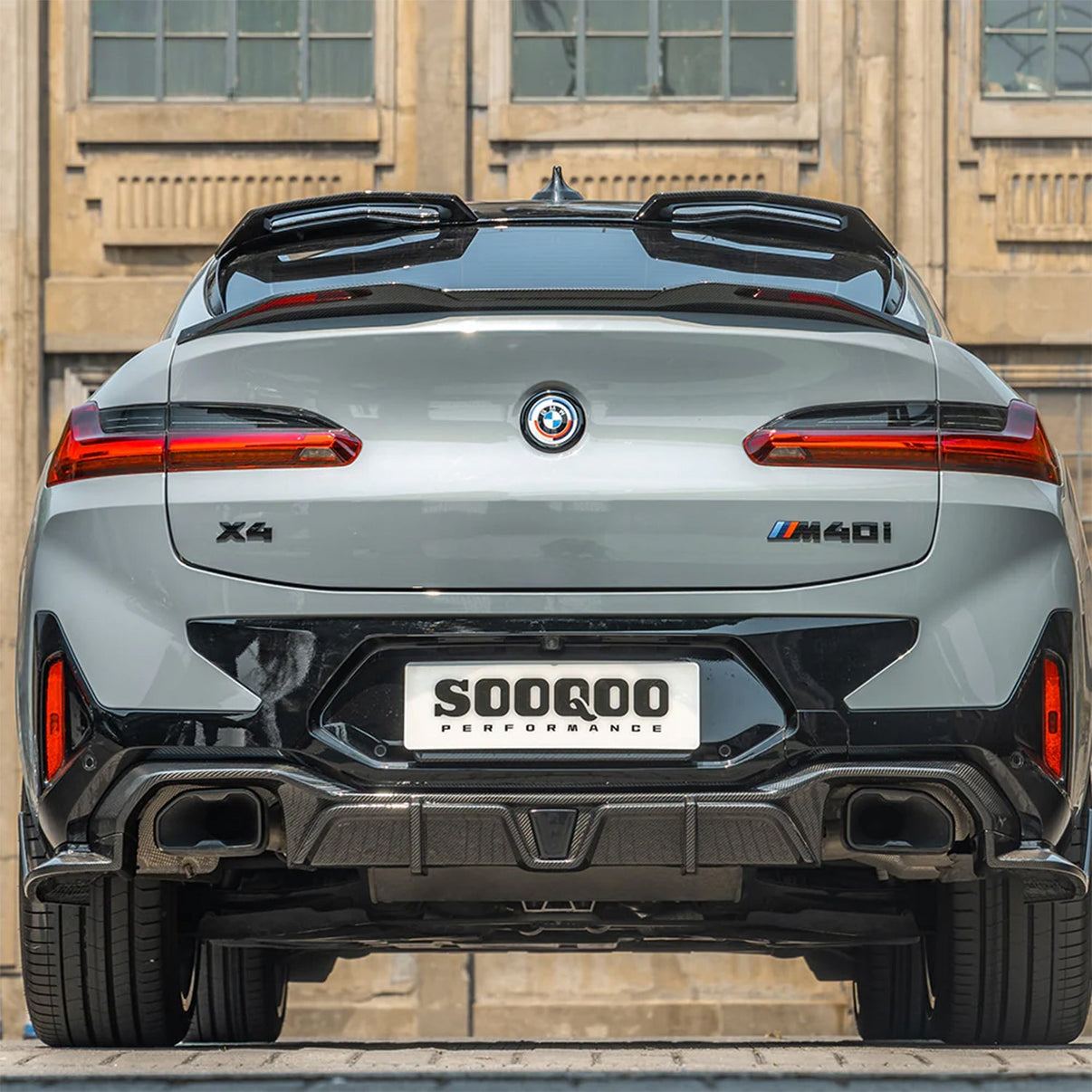 Add a sharp finishing touch to your BMW X4M F98 with the SooQoo aggressive roof spoiler, crafted from high-quality gloss pre‑preg carbon fibre. This bold design enhances the coupe-like roofline with a distinctive rear extension that transforms the vehicle’s upper silhouette. Designed specifically for the F98 platform, it offers flawless fitment and a striking presence.