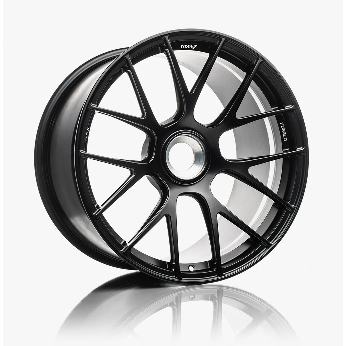 TITAN 7 T-S7 fully forged alloy wheels for the Porsche 911 GT3 and GT3 RS (991 & 992) were designed completely with performance in mind. Pressurized with 10,000 TONS of industry-leading pressure to give you a wheel that is incredibly strong while giving you all of the performance attributes you need in a track-focused wheel. Upon close inspection, you will notice “I- Beam” spokes which are strategically placed to give the wheel rigidity while keeping weight to a minimum. The split 7-spoke design was chosen for its motorsports heritage and track-worthy structure. Each wheel from Titan 7 features their improved traction improving bead seat knurling, beefed up inner rim flange for durability and strength, and logo machined accents. The T-S7 Centerlock is engineered for Porsche GT / Turbo variants with Centerlock option. Wheels are tailored to clear OEM Carbon Ceramic Brakes & Steel brakes while achieving maximum concavity. All wheels are durability tested according to JWL standards to ensure safety while you perform. Authentic performance from Titan 7. Forged for All.