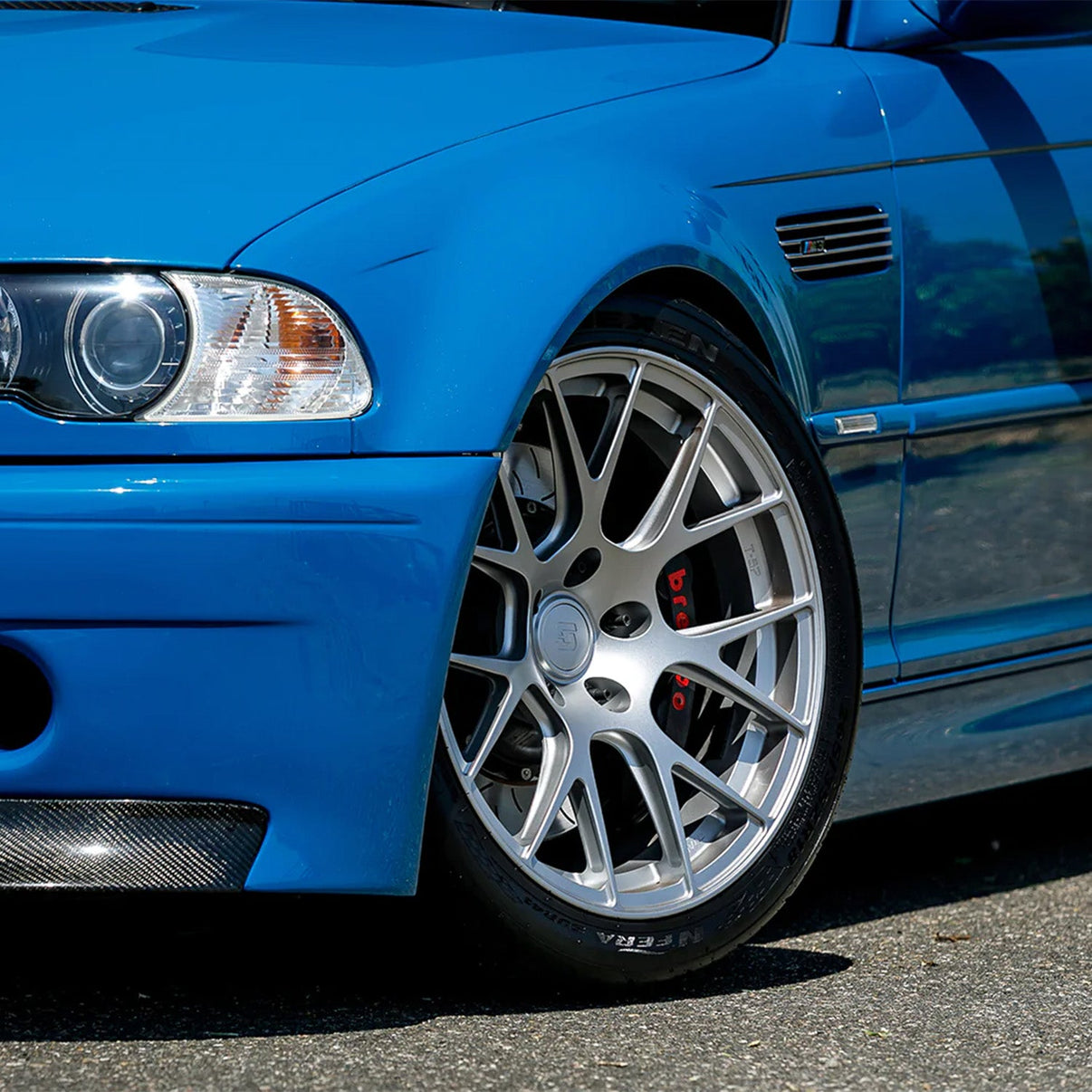 TITAN 7 T-S7 for the BMW E46 M3 is a fully forged wheel designed completely with performance in mind. Pressurized with 10,000 TONS of industry-leading pressure to give you an incredibly strong wheel while giving you all of the performance attributes you need in a track-focused wheel. Upon close inspection, you will notice “I-Beam” spokes which are strategically placed to give the wheel rigidity while keeping weight to a minimum. The split 7-spoke design was chosen for its motorsports heritage and track-worthy structure. Each wheel from Titan 7 features our improved traction improving bead seat knurling, beefed up inner rim flange for durability and strength, and logo machined accents. The T-S7 is designed for each application to clear all popular aftermarket big brake kits while achieving maximum concavity. All wheels are durability tested according to JWL standards to ensure safety while you perform. Authentic performance from Titan 7. Forged for All.