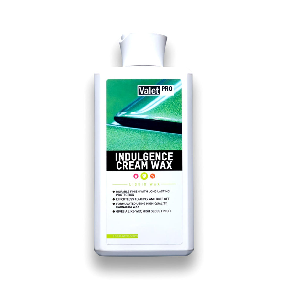 Valet-Pro Indulgence Cream Wax is a liquid wax designed to make the protection step of any car detail easy. Its smooth and creamy texture can be applied to the paintwork in a simple spread on & wipe-off process saving time compared to traditional hard waxes.