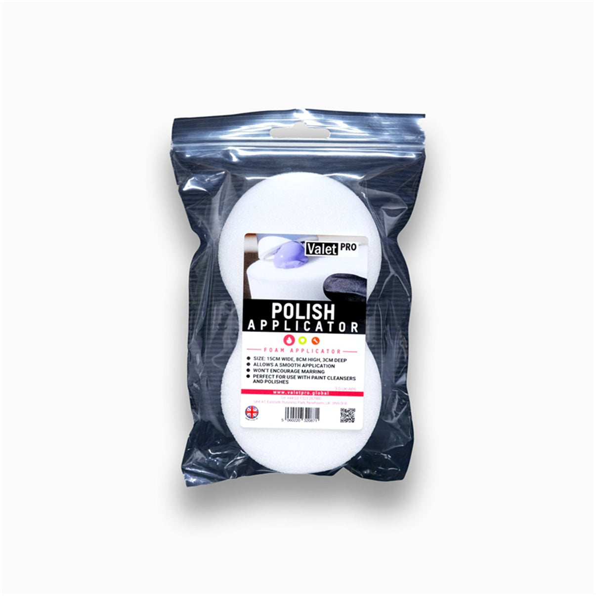 Valet-Pro Polish Applicator is made with a stiff foam with tight cells, offering a smooth surface for applying polishes. The stiffness helps push the polish across the surface enabling the polish to do its job without marring.