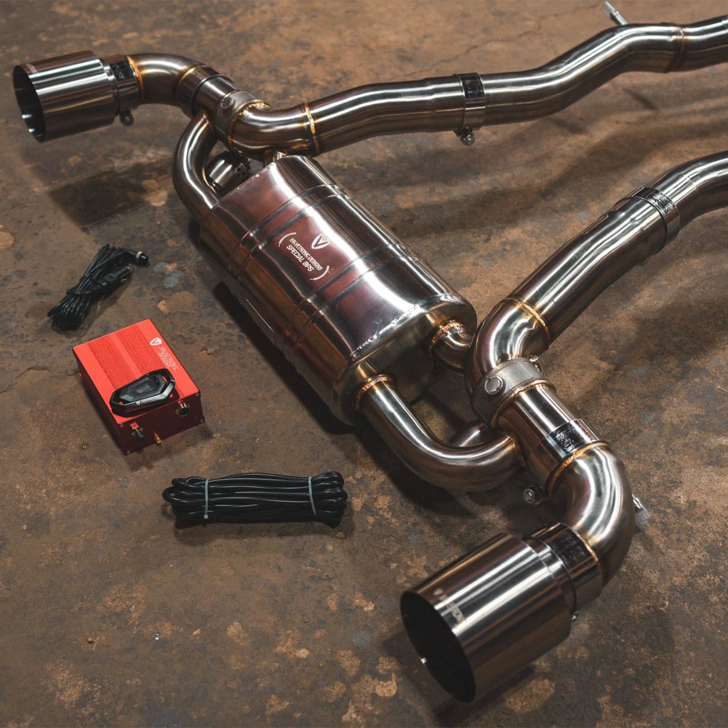 Enhance your Toyota Supra A90/A91 with the Valvetronic Designs Valved Sport Exhaust System, engineered to deliver an exhilarating driving experience. This system features a valved design that allows exhaust gases to flow with minimal restrictions when the valves are open, providing the most raw sound experience possible.