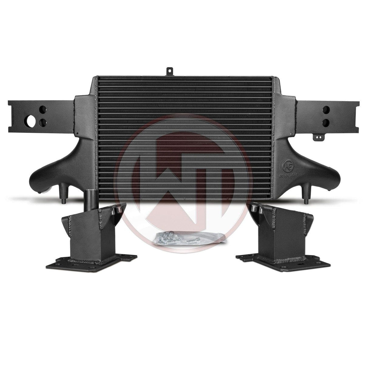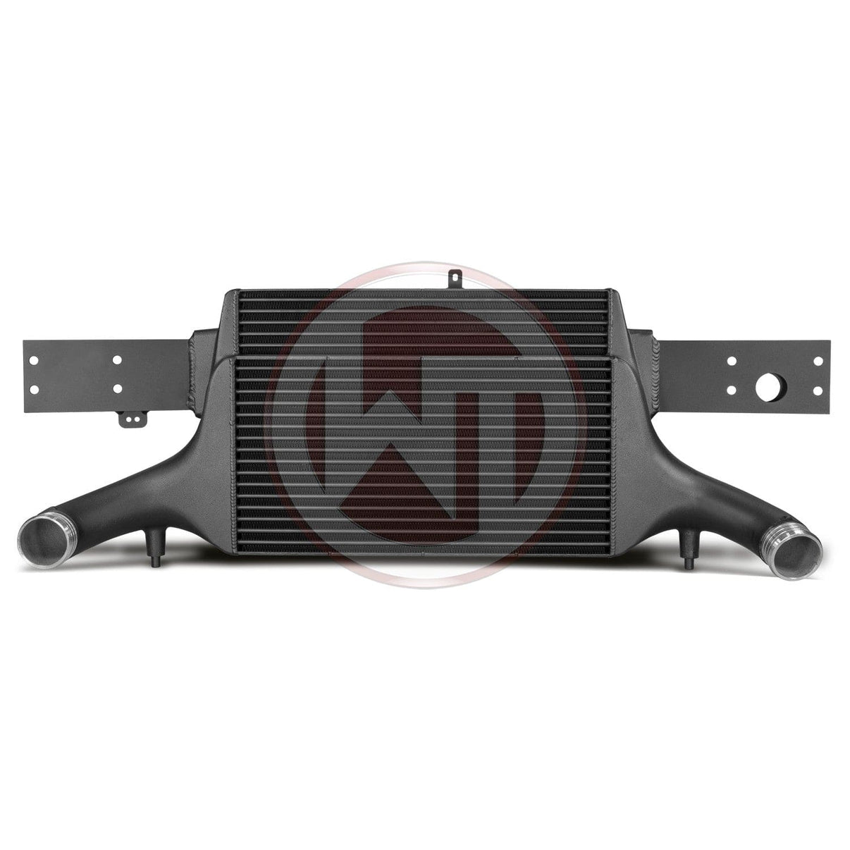 The high-performance intercooler has the following core dimension (515mm x 367mm x 95mm = 16,5L/14,45Inch x 3,74Inch = 1006,9Inch³) and this offers a 84% larger cooling surface and 101% more charge air volume compared to the original intercooler. Our engineers have increased the intercooler core size and efficiency, as well as improved the end tank design to remove any OEM bottlenecks, resulting in increased flow rating and charge cooling properties. This Audi RS3 intercooler uses our award-winning WAGNERTUNING Competition Intercooler Core, which is made specifically for this application. Constructed of the highest quality TUBE and FIN intercooler cores with inside turbulators combined with cast aluminium end tanks optimised by CFD for best possible internal airflow. With the help of additional air guides, inside inlet, a uniform filling of the intercooler is provided. The result is excellent cooling properties with minimum pressure drop. So this kit is just the right thing for racing. The intercooler and the crossmember form a stable unit and weigh only 14,1 kg. It is mounted to the original mounting points and is easy to perform (1:1 exchange). Optimum cooling of the charged air with a clear increase in performance! 68mm (2,67Inch) in- and outlets.