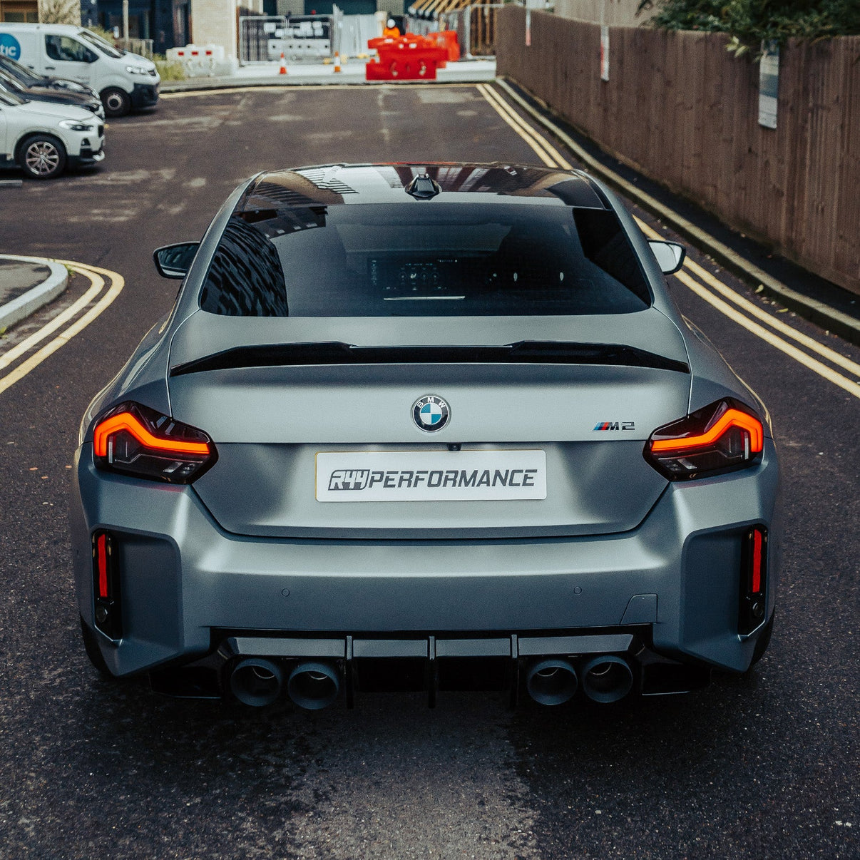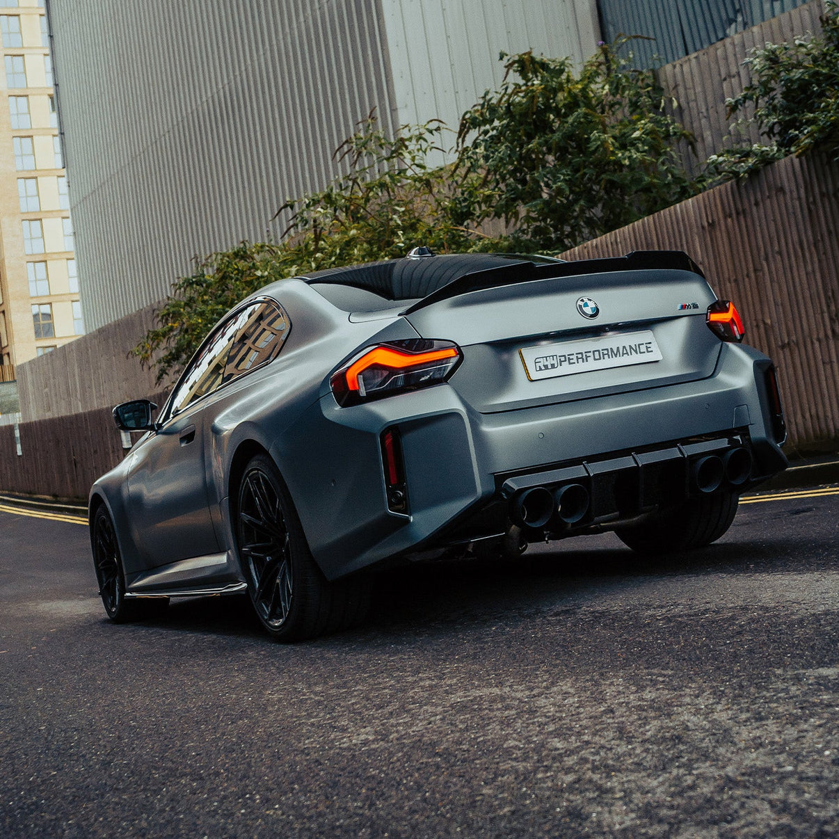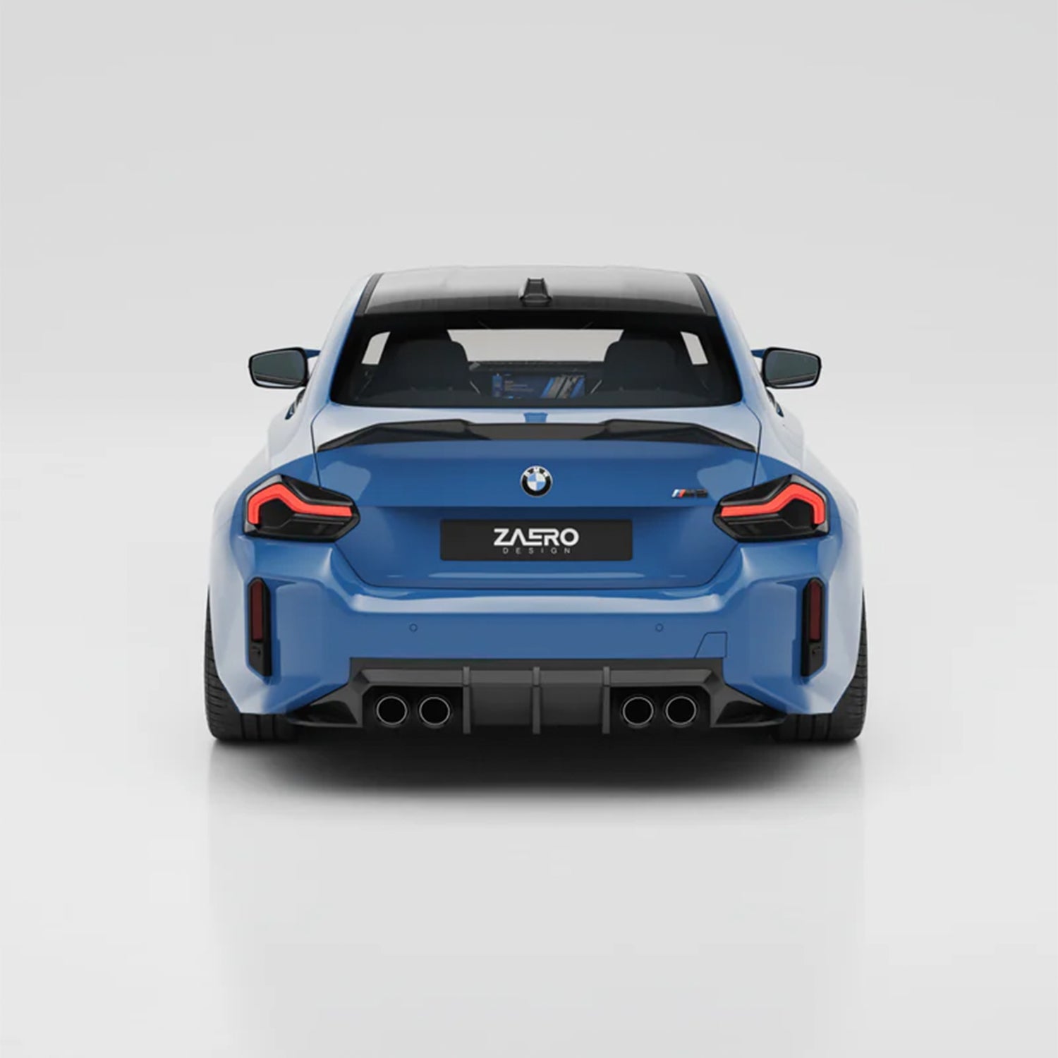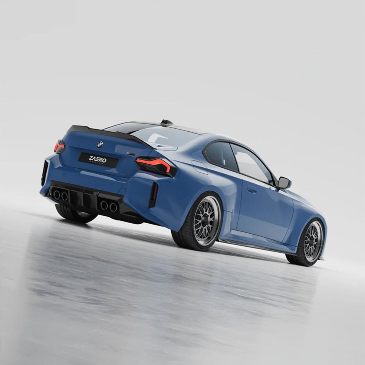 Give your BMW G87 M2 a sharper, more aggressive rear-end style with the EVO-S Rear Diffuser by ZAERO Design. Designed specifically for the 2023+ M2, this premium gloss black diffuser delivers a bold aesthetic upgrade while retaining factory-level fitment and quality. Featuring a pronounced triple-fin design and crafted from durable, high-grade ABS plastic, the diffuser integrates seamlessly with the factory rear bumper to create a performance-inspired appearance that commands attention. Each unit is TÜV-certified for road use and comes with all necessary installation hardware for a straightforward fitting process.